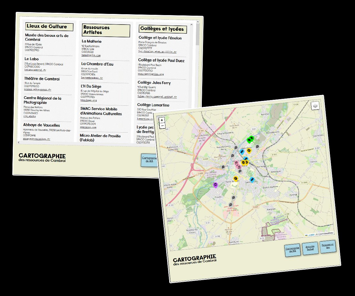 Cartographie collaboratives des ressources disponibles pour les étudiants des Beaux-arts de Cambrai.