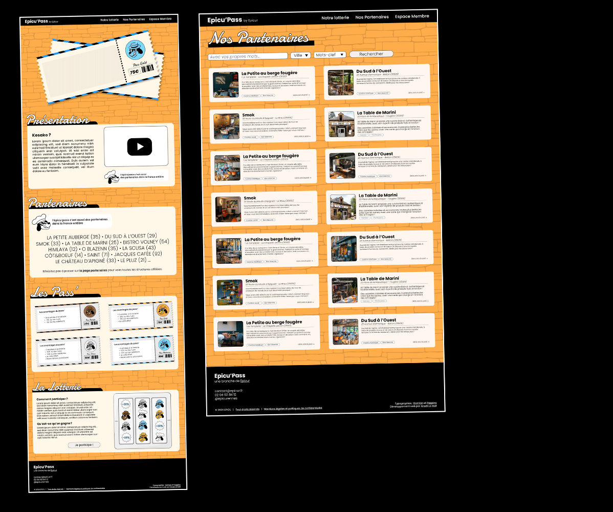 Maquette pour le site web d'Epicu ainsi qu'une série de supports pour les réseaux sociaux