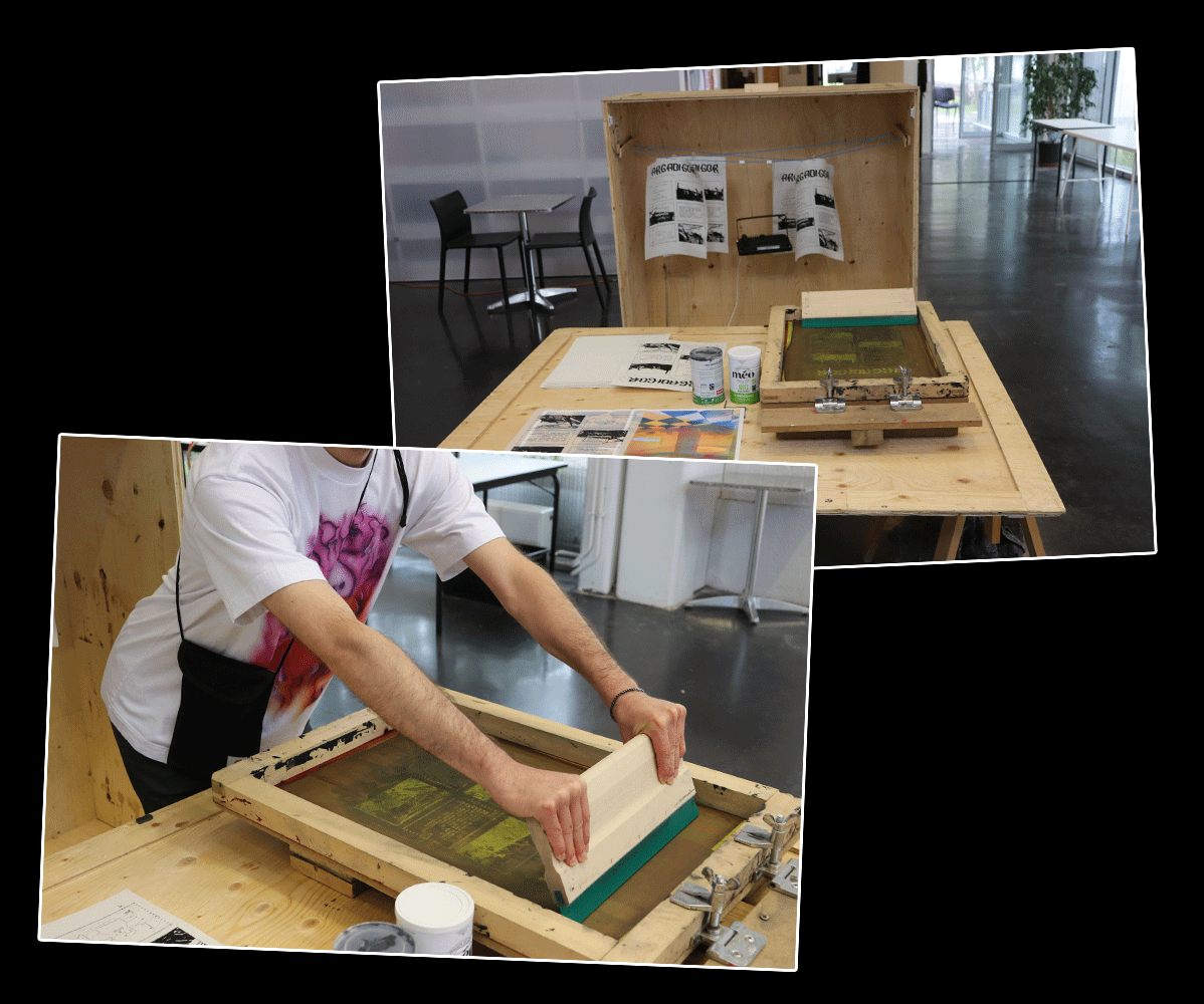 Communication pour le festival Pabfest. Atelier de sérigraphie pour de l'impression de textile et de sous-bocks.