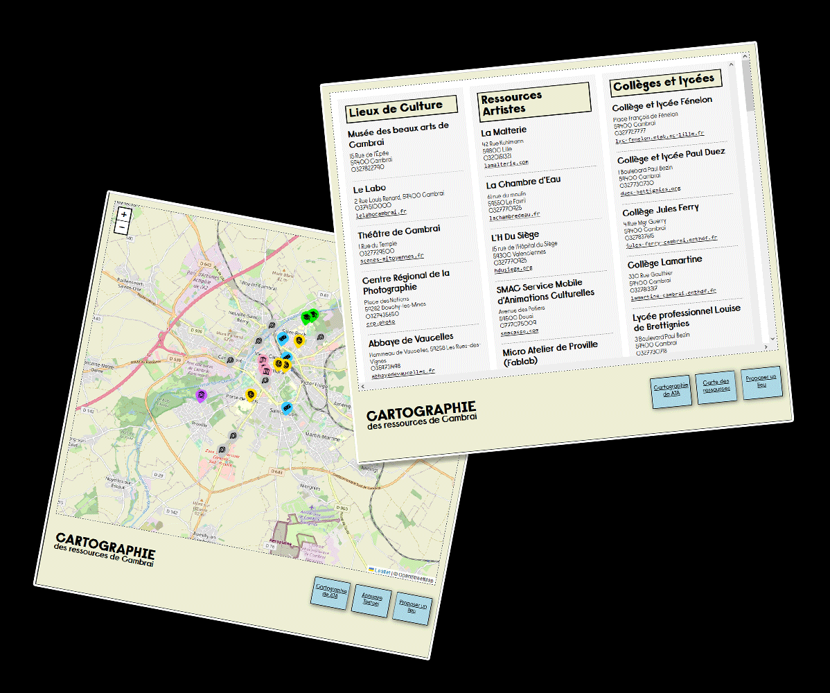 Cartographie collaboratives des ressources disponibles pour les étudiants des Beaux-arts de Cambrai.