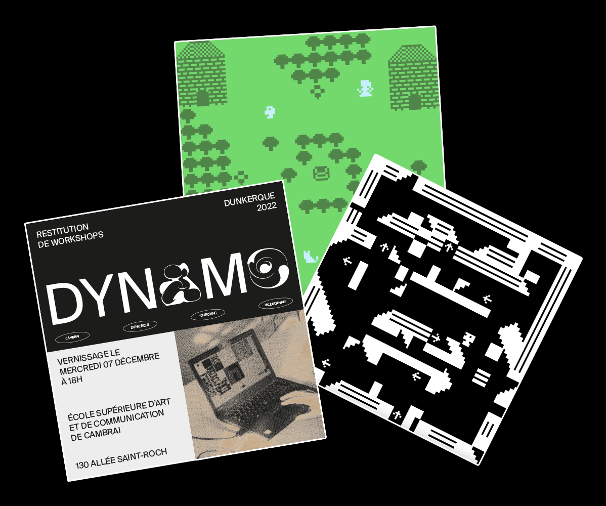Dynamo est une restitutions des productions réalisées dans le cadre du worskhop “Énergie”. Cette restitution a pris la forme d’une exposition à l’Ésac du 7 décembre 2022 au 21 janvier 2023. Il s’agissait d’une restitution à chaud, l’occasion de faire profiter à toute l’école des projets des étudiant·e·s de 4e & 5e années. Cette exposition est augmentée d’un site-web qui permet l’archivage des productions.