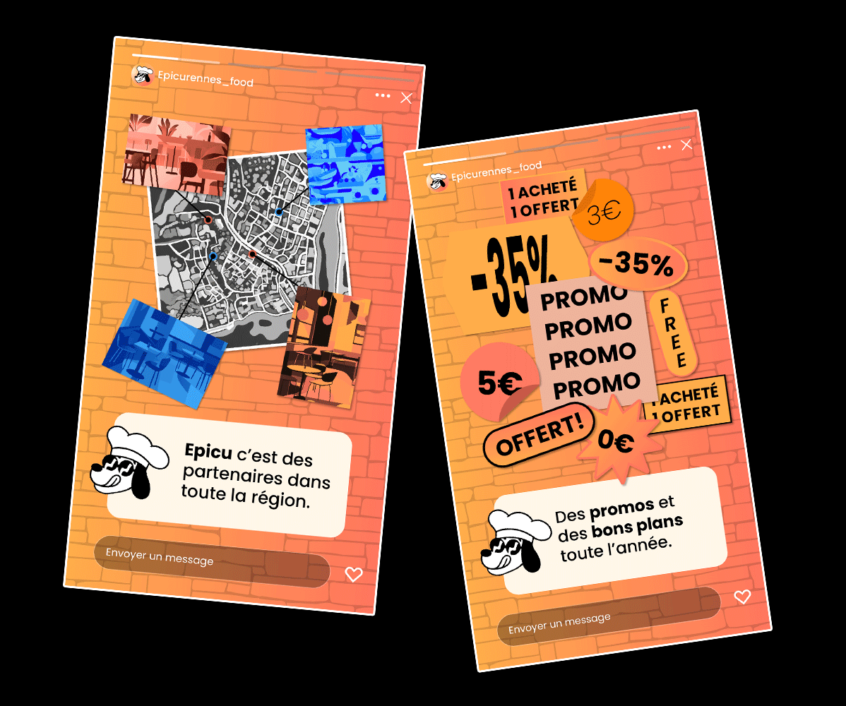 Maquette pour le site web d'Epicu ainsi qu'une série de supports pour les réseaux sociaux