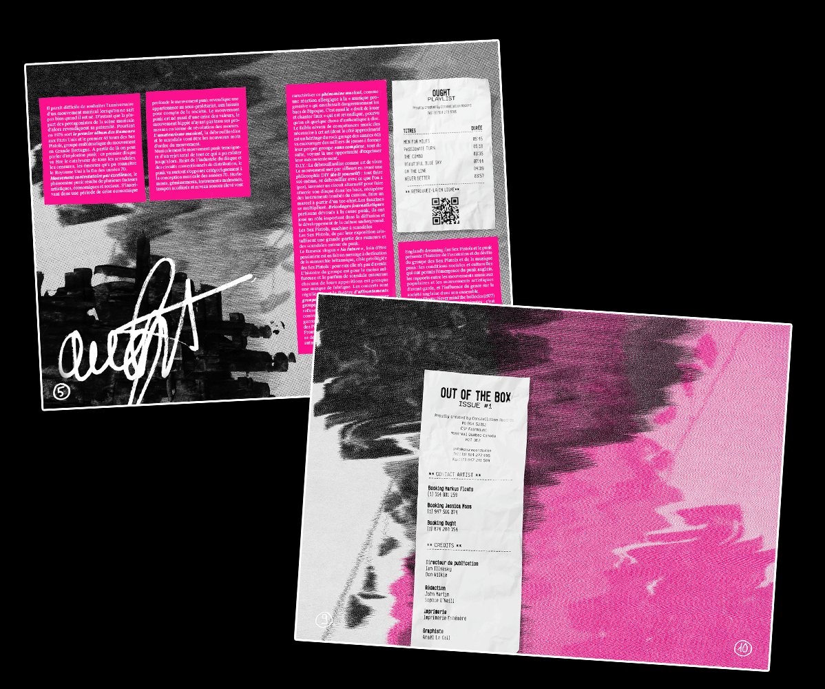 Fanzine pour Constellation Reocrds, un label de musique indépendant Canadien. Ce projet fait suite à mon mémoire de DNMADE «Propagande et Engagements», un écrits sur les formes de luttes, et les représentations graphiques de l’opressions et des révolutions. Il s’agit d’une série de 4 fanzines, un par style musical, imprimés en laser avec une couverture en Risographie.